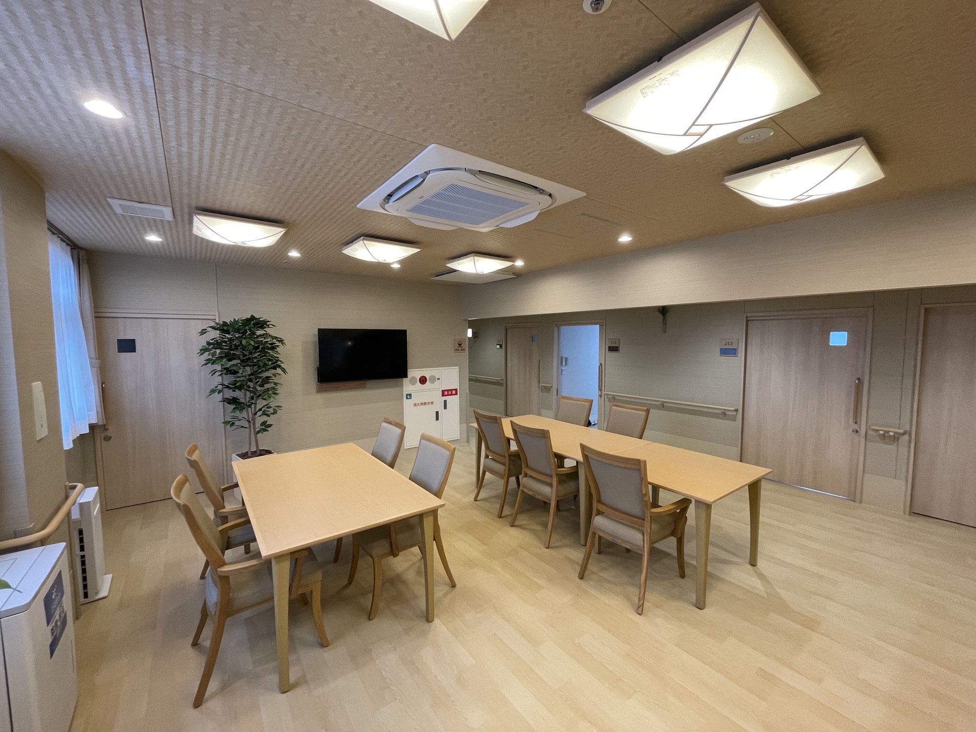 グレー基調の壁に木製のルーバーを組み合わせたモダンな外観、木目調で明るく心安らぐ内装デザイン、高齢者の方が生活しやすいバリアフリー構造など、過ごしやすい環境をご提供しています。